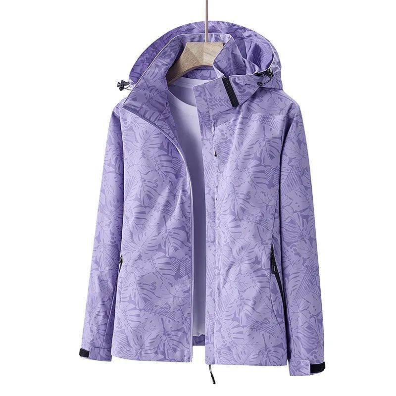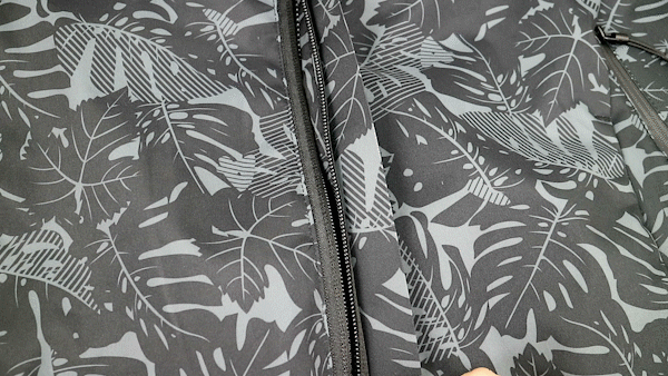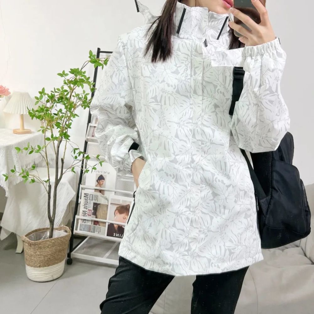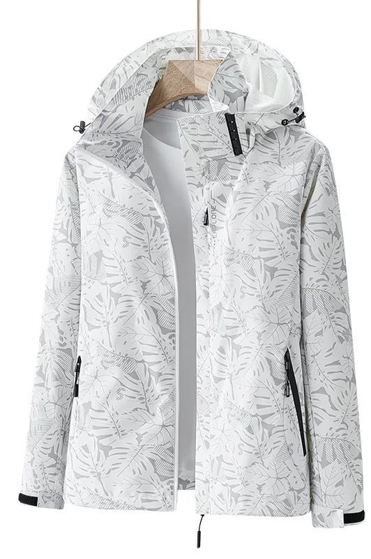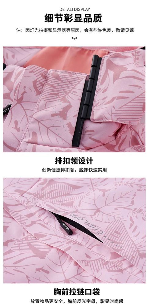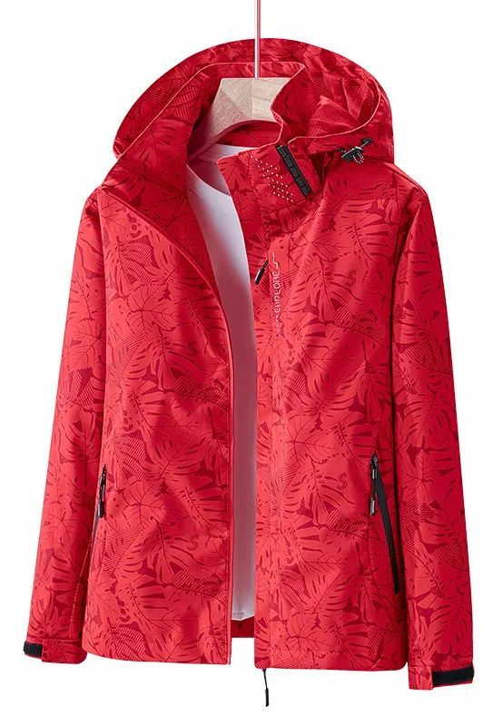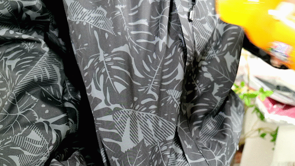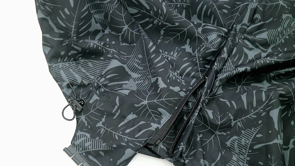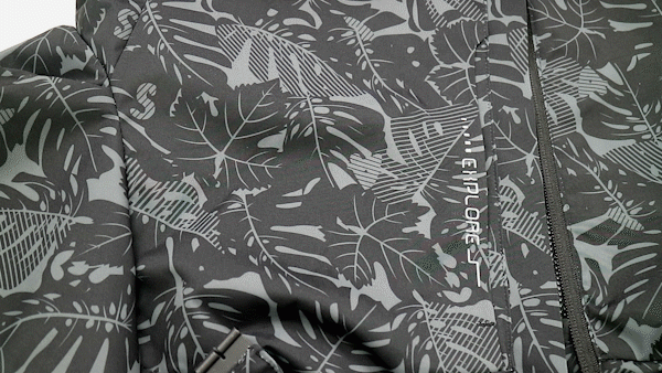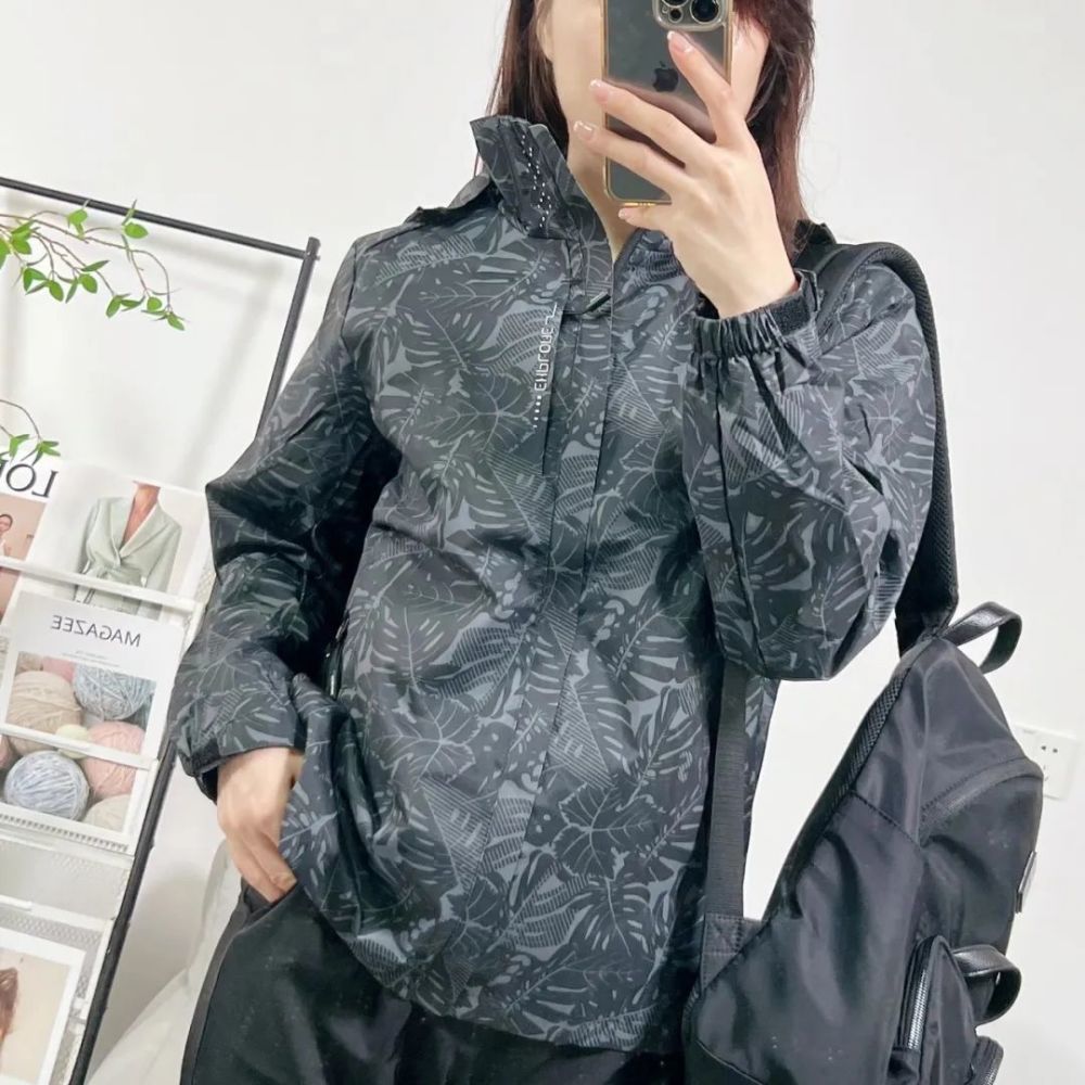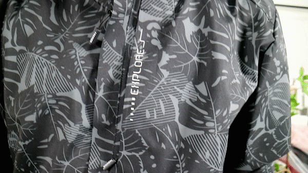 第一眼就觉得它的枫叶款式和市面上很多冲锋衣不一样,不是简单的纯色色彩拼,而是有点像迷彩的感觉,但细看却是偏休闲的树叶纹的花纹。