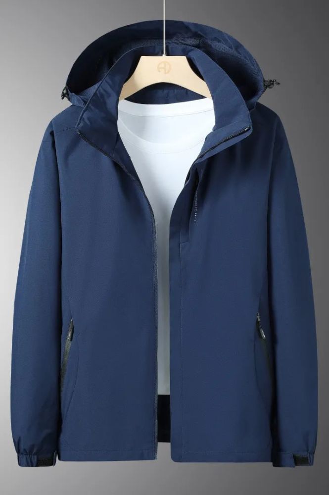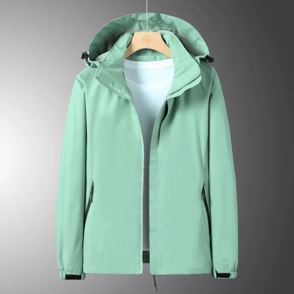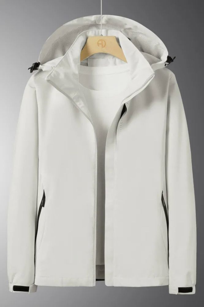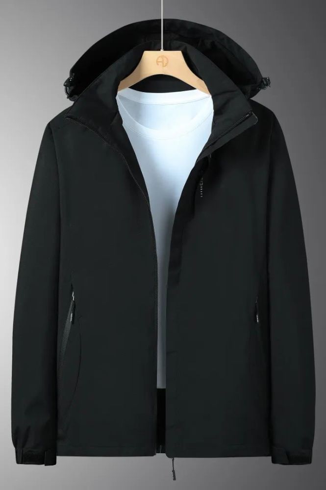 衣服表层采用具有「荷叶式拒水性」的特殊涂层,防水、防风,材质硬朗帅气,随便一点儿小风小雨完全没在怕的。