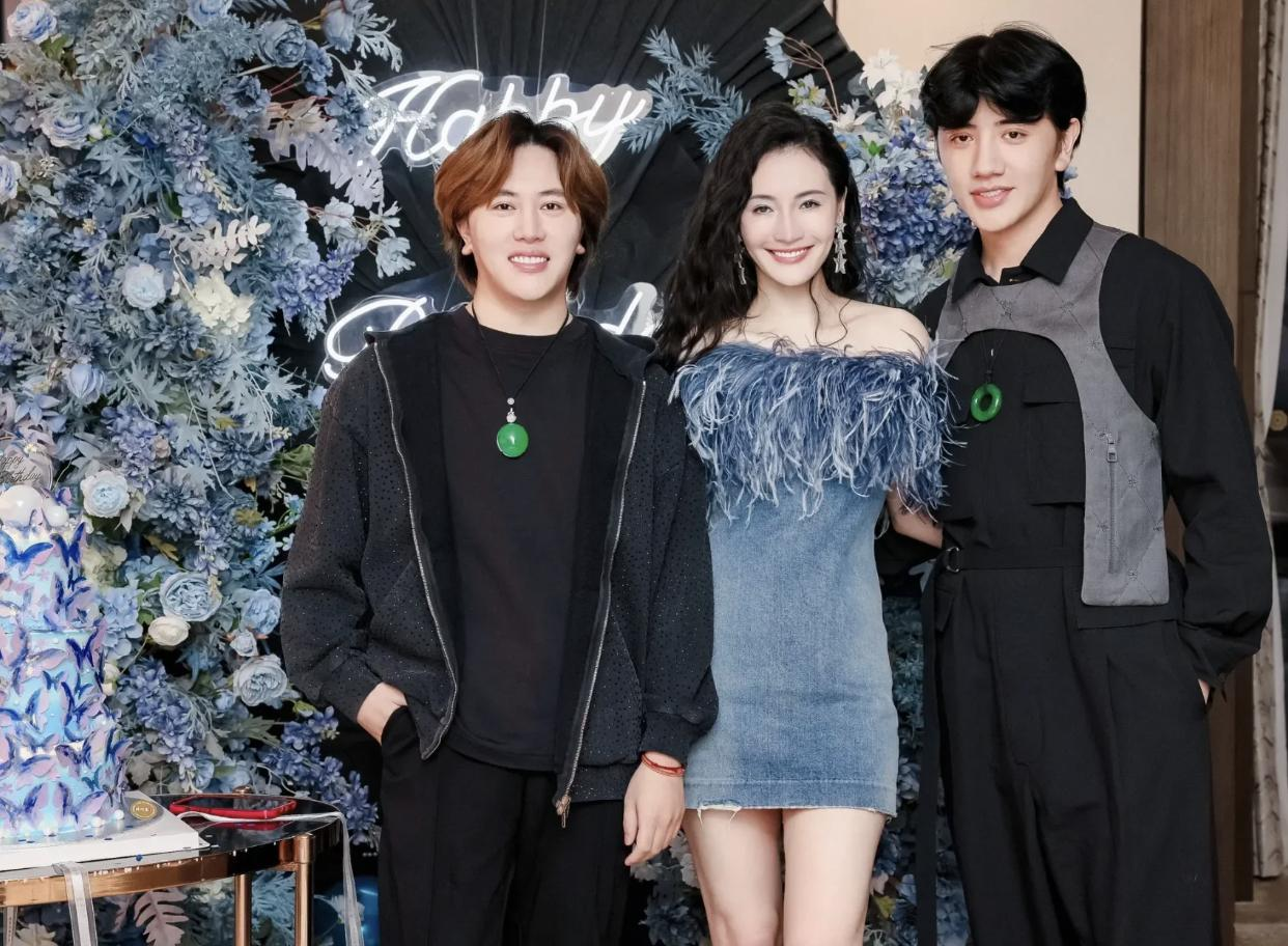 在拍大合照时,姚笛站在角落里,旁边是张定涵和钟丽缇。董璇等人蹲在第一排,笑容灿烂。寿星孙晶晶穿着蓝色紧身裙,展现出完美身材,成为全场焦点。