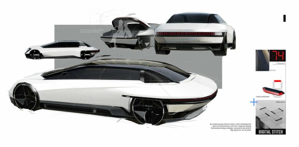 这项独立研究被命名为现代九号,由韩国设计师Jeesoo Kim 和 Yunsik Kim构思。它采用电池供电的豪华运动型轿车的形式,采用非常规的设计,如N Vision 74,具有现代车型昔日的一些造型元素。