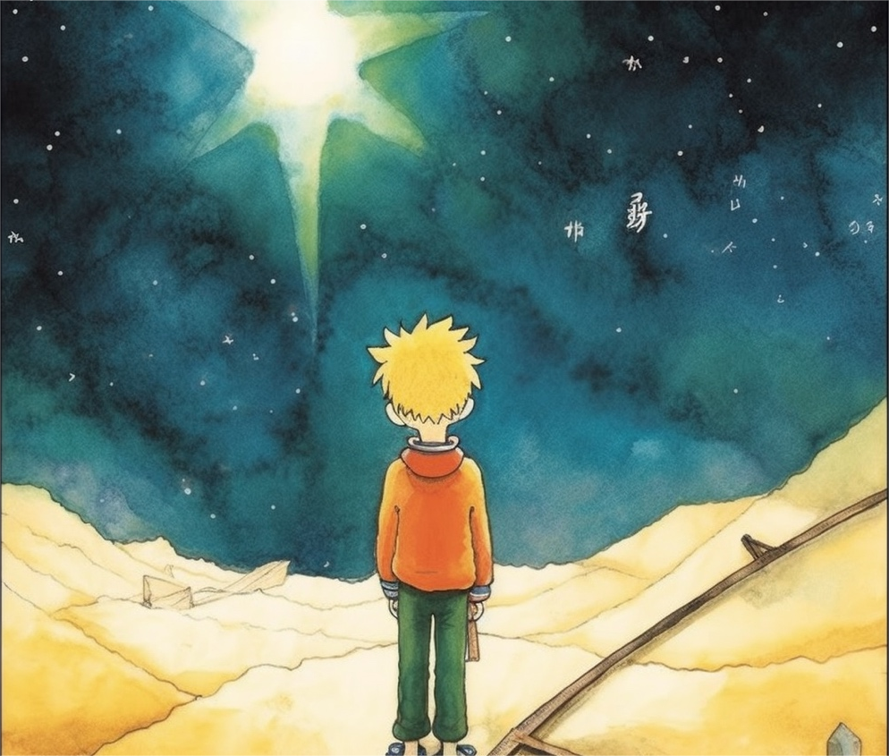 我试着效仿,结合ChatGPT和Midjourney,生成了一个《小王子》续集的绘本。