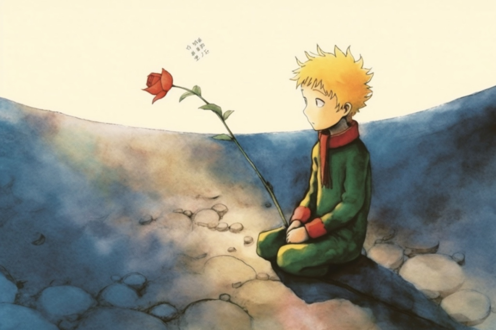 小王子漂泊在宇宙中,思念着他曾经所爱的玫瑰。他想起了她的芬芳和温暖,想起了和她一起经历的点滴,心中充满了想念和向往。