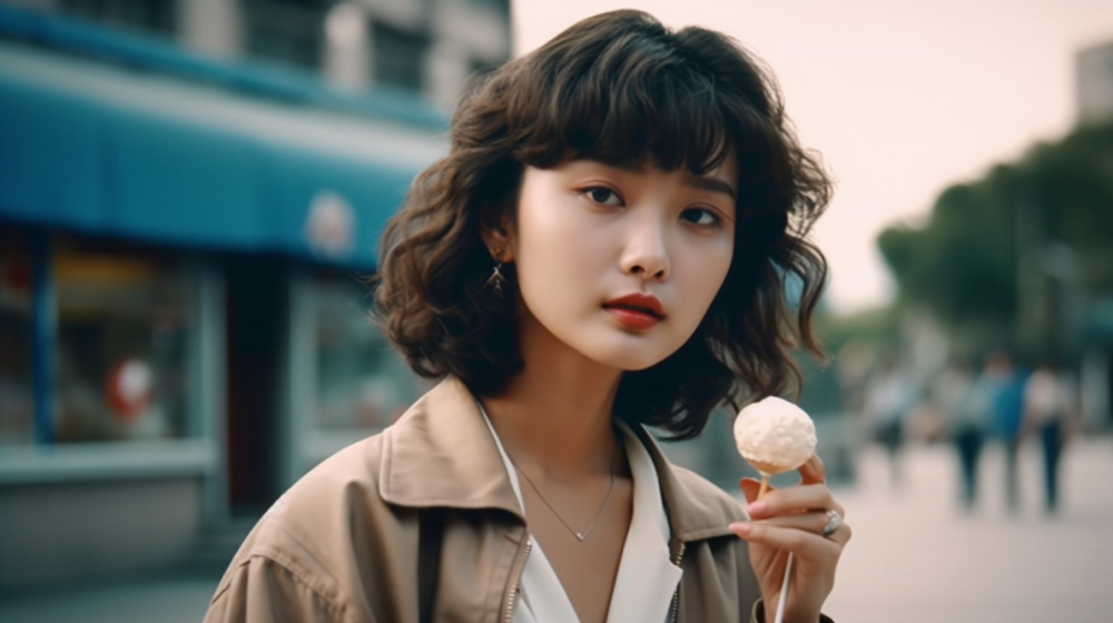 例如,Prompt为“中国上世纪80年代的一个漂亮女孩,20岁左右,她吃着冰淇淋,走在当时的上海外滩。有人物也有周边环境。80年代的风格。”