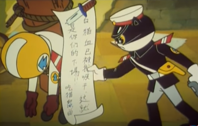 杀害白猫的吃猫鼠最后被黑猫警长击毙,这一集非常惨烈,因为是动画片一旦有正义的小伙伴死亡,总会引起孩子们的悲哀,尤其白猫是黑猫的左右手。