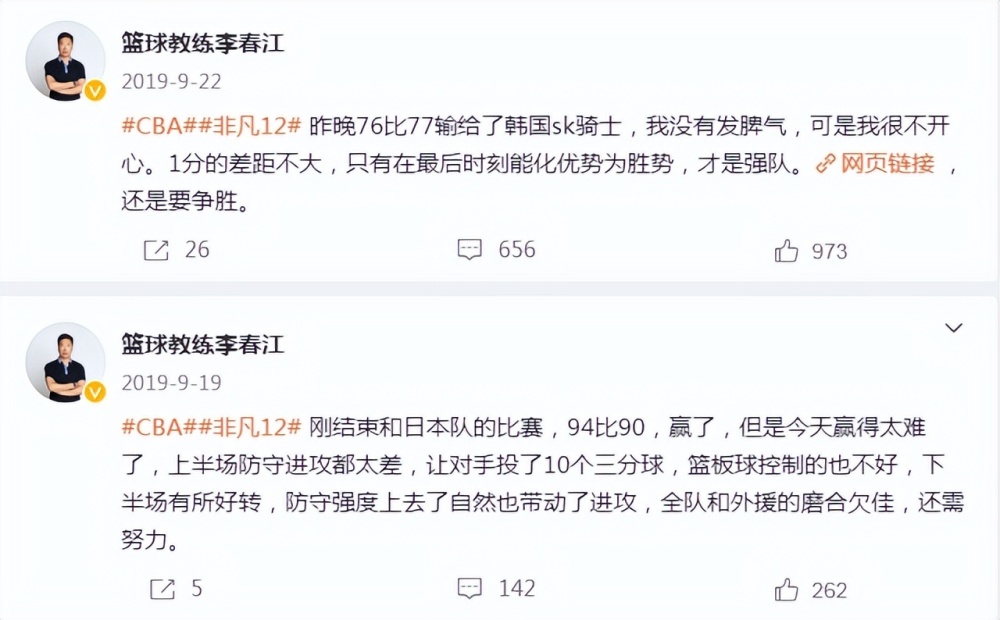 能成为国手并参加奥运会,李春江显然不是等闲之辈,骨子里流着要强的血液,他曾在2018年赴西班牙挑选外援时感叹:“前几天在巴塞罗那,去看了当年的奥运村。1992年我们在这里排名垫底回家,我当时真的一辈子不想干篮球了!现在又回到这里,却又觉得当球员太幸福了!”