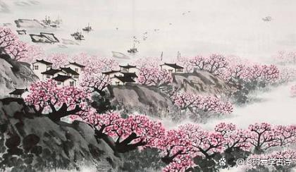 远远看去,前面有一带围墙。树木掩映之间,隐约有几间茅草屋。清澈的溪水静静地流淌,小桥矗立在溪水之上,桥旁有一座酒家,青色的招牌旗帜在风中飞扬。偶然兴之所至,乘着游兴,走过东面的山冈。那里鸟语花香,莺儿鸣啼,燕儿飞舞,蝶儿匆忙,一派大好春光。