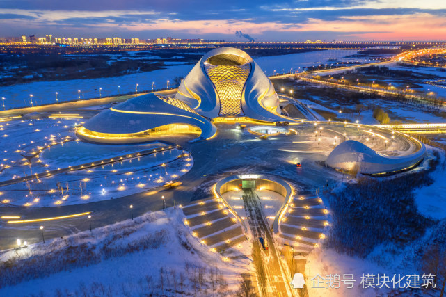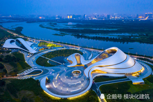 该剧院依水而建,采用异型双曲面的外形设计,具有大跨度、高空间、复杂钢结构等特点,施工难度极大,被ArchDaily评选为“2015年世界最佳建筑”之“最佳文化类建筑”。