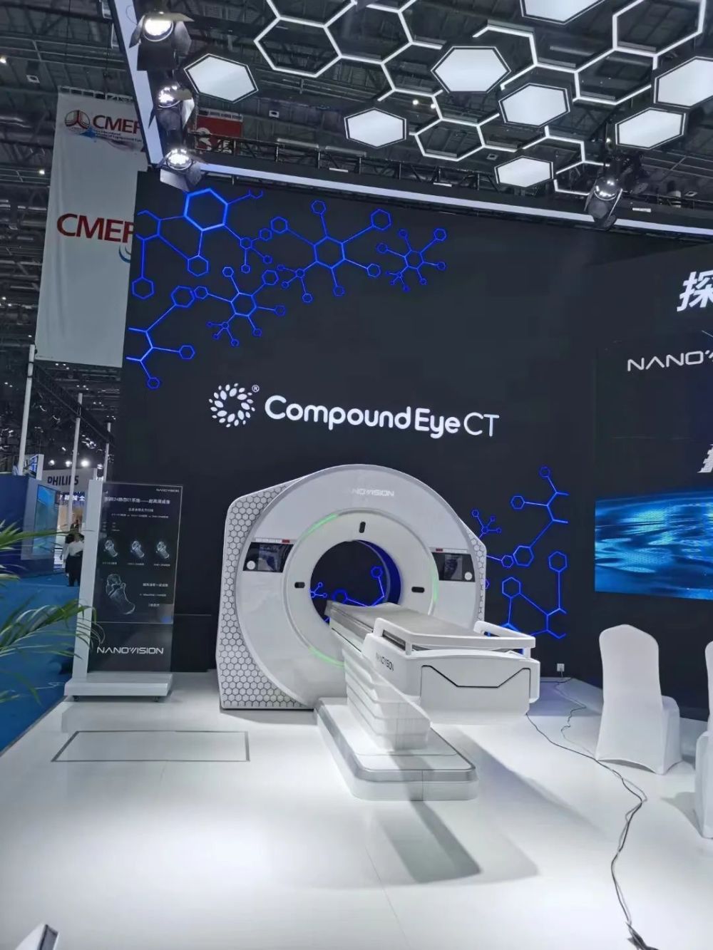 与专注于螺旋CT的东软医疗不同,纳米维景决心以静态CT解决现有临床问题。本次纳米维景带来了全球首台全身医用多源静态CT——复眼24。该设备采用了64个光子流探测器阵列群和24个扫描射线源阵列群构成双环结构,实现了64倍优于传统螺旋CT的体素分辨率,并具有多能谱成像能力。同时,复眼24静态CT已实现0.165mm的扫描层厚,接近专家公认的0.1mm介观成像分界线。该产品预计于明年获批。