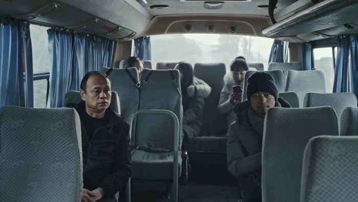 男主开篇先上了一个中巴车,车上实际上是个小社会,有孕妇、年轻人在聊天、刷手机,父老乡亲相互寒暄,有年轻女孩。
