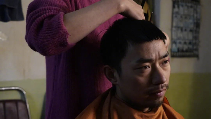 从庙里出来,他走进了一家理发店,遇到了曾经的初恋,想尝试却得不到的痛苦。理发店这里是我影片最喜欢的部分,我在写剧本的时候那场戏的画面和影像视听感已经在脑中挥之不去了。