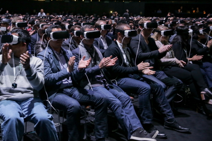 三星发布会的与会者佩戴Gear VR眼镜(图片来源:https://news.samsung.com/)