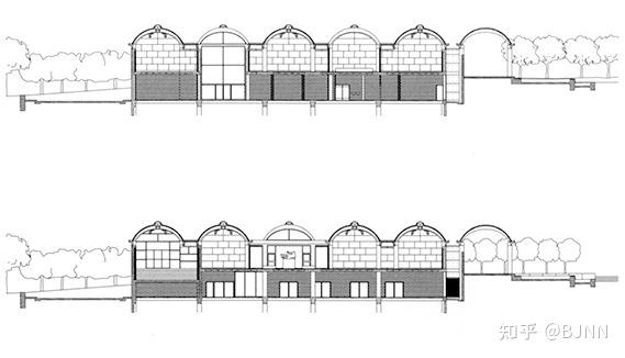 金贝尔美术馆的结构还是真实的吗?金贝尔美术馆展现了拱形的空间形式,却不是拱结构,但正是中间这一道自然的光线,才将混凝土冰冷工业化的材质赋予人性,从综合性考虑,是结构、形式与空间的统一。