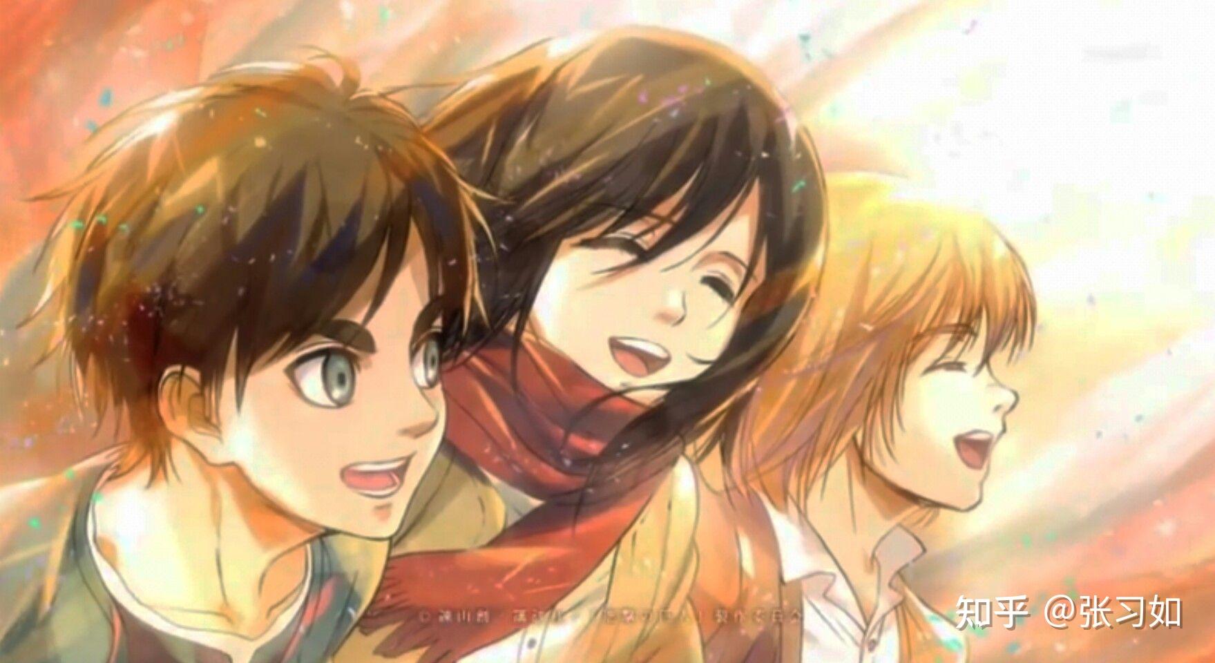 所以,在这种活地狱一样的环境里,《进击的巨人》主角团的三个成员:艾伦、三笠和阿尔敏可以说不仅没有一个是独立完整的人,更是在巨人代表的种种严苛内卷势力压迫下的不正常环境里,一个必须随时挣扎求存的,心理上已经有了扭曲倾向的人的人格的三个侧面。