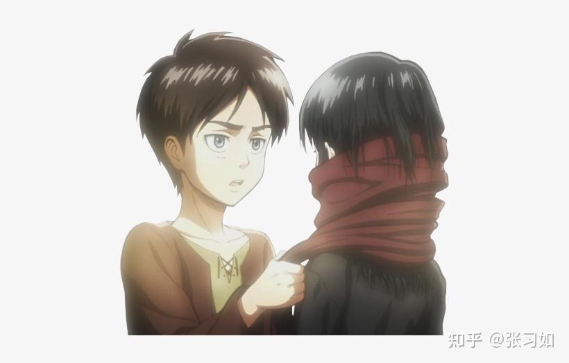 而同样只有艾伦没有三笠的话,人的自我意识会越来越感觉不到自我的现实存在,就会脱离现实进入主观的虚妄和客观的无识无力中,三笠是面对现实的冷静自省是反抗黑暗的力量。在成长过程中,首先主体意识艾伦是喜欢沉浸在自己的理想梦境中,而会本能地反抗三笠代表的残酷现实的,所以艾伦多次反对三笠的保护和追随;而反过来意识到自我存在,关心和维护自我存在是三笠的本能动力,没有三笠代表的现实能力保护,只有自我意识的艾伦会不顾现实地冒险最终可能真的会死。所以艾伦是三笠的家人,当然反过来也是,主体意志和自我觉知本来就是意识的一体两面。当然三笠和兵长也都有殴打艾伦教育的光辉事迹,象征人类的客观理性会对过度膨胀的自我意识进行约束。