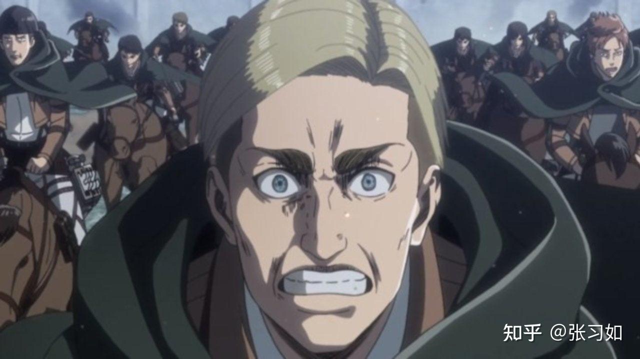 在这种不见底的残酷和黑暗面前,人类本身的软弱和缺点其实也暴露无遗,格里沙真遇到刑讯逼供也在哀嚎中交待了他知道的一切,莱纳因为认知失调而精神分裂,埃尔文团长则是时刻处于他振动人心的激情演讲本质上是让大家为了让他满足自己好奇心的愧疚感之下,阿妮等人也同样在良心的谴责,对家人的内疚,对自己无力的愤怒,和痛苦中挣扎。
