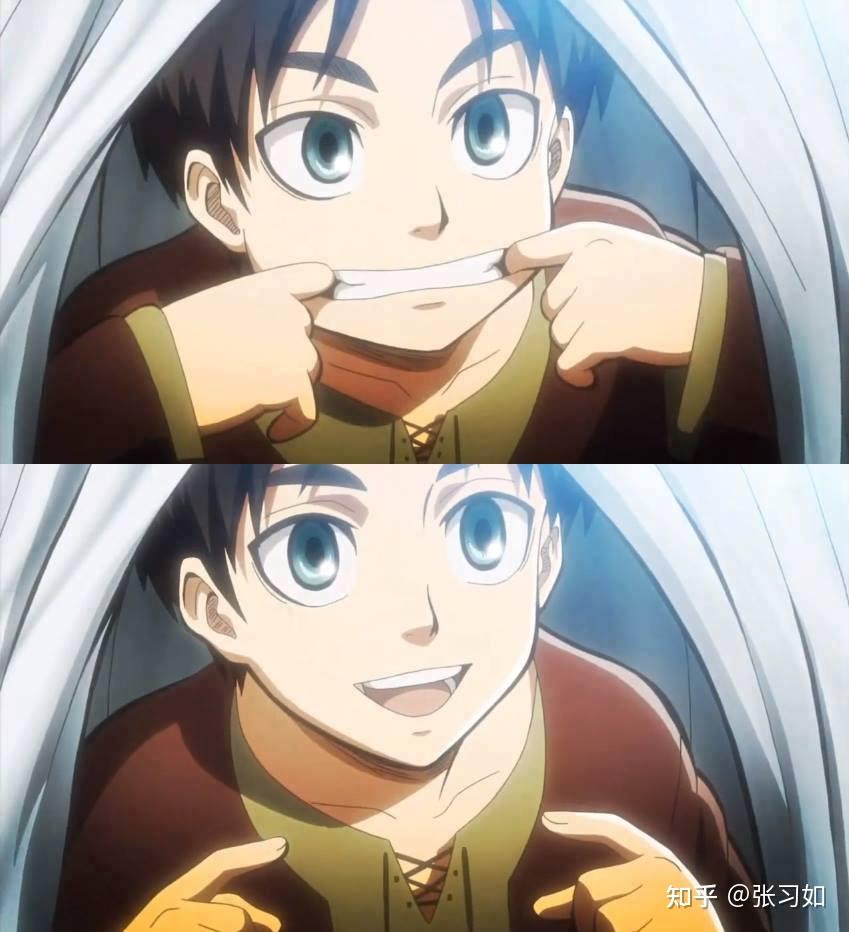 另外,其实可以用艾伦三笠阿尔敏模式分析巨人里面其他更有现实色彩的人,比如韩吉明显有占主导性的偏向好奇探索的阿尔敏人格,而阿尼为什么和阿尔敏谈恋爱,是因为阿尼也是善良混乱人格,意识形态对阿尔敏和对阿尼来说都差不多没有意义。阿尔敏为所有人的真情表述感动,但是他自己从不表现出仇恨,害怕,贪婪这些情绪,即使在所有人都恐惧仇恨的时候,这是阿尔敏人格无我的本质决定的。阿尔敏打艾伦,就是一个人头脑里的灵性感知和精神与自己头脑里膨胀的自我战斗的过程,阿尔敏关心艾伦对三笠的态度也是因为他们之间的关系是非常重要的,是一个人和自己的不同自我对话。艾伦巨人化以后,人类一开始竟然是准备把艾伦三笠阿尔敏当成一个人阿尔敏艾伦三笠之间的事迹也经常互相串,话语也经常类似。当然从小到大,他们三个朝着目标奋斗的顺序也是一样的:由艾伦代表的意志冲在最前面,一马当先带领大家上;由三笠代表的面对现实的理性战斗精神跟着,阿尔敏代表的灵性在最后压阵。