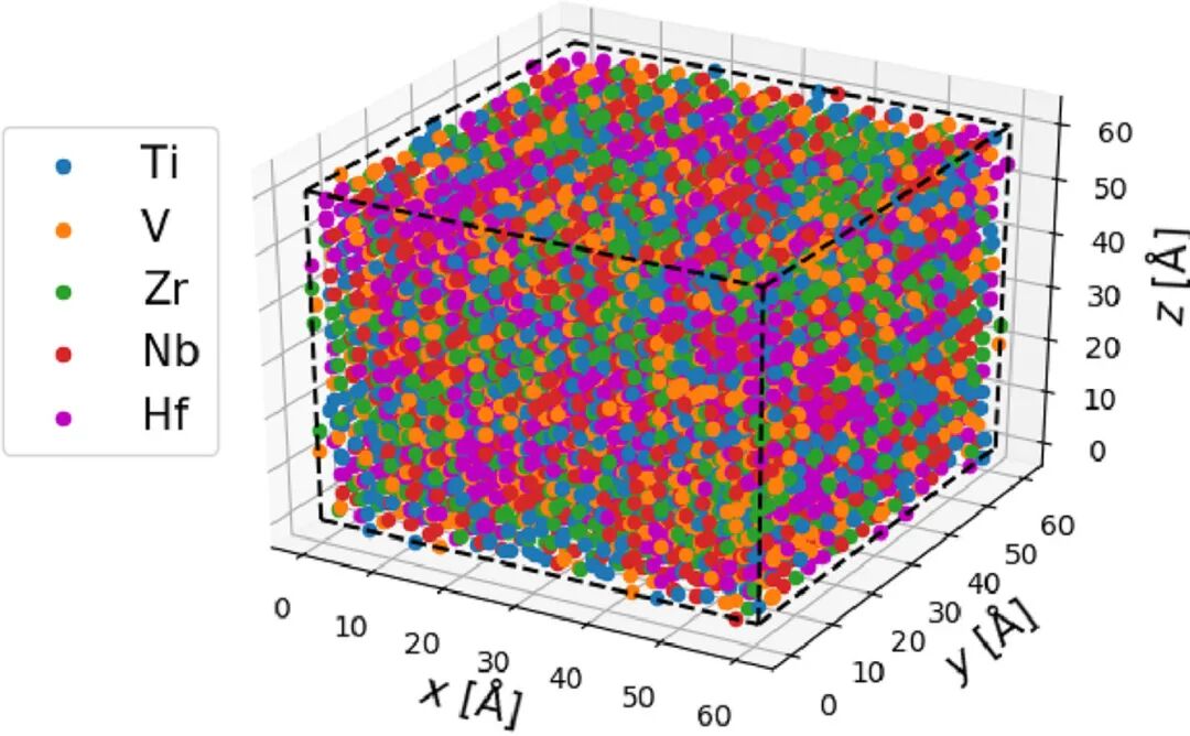 高熵合金(HEAs)的许多特性,如硬度增加、电导热导降低以及独特的储氢特性,都被认为与合金元素尺寸差异导致的晶体局部晶格畸变有关。然而,目前文献中的直接证据非常有限,因此它仍然是一种假设。本文利用全散射测量和反向蒙特卡罗结构模拟,对3种BCC高熵合金TiVNb、TiVZrNb和TiVZrNbHf中不同原子大小差异引起的局部晶格畸变进行了详细的评估。分析表明,合金中的局部晶格畸变随元素尺寸差异的增大而增大。当BCC高熵合金中形成具有CaF2结构的二氘化物时,晶格畸变降低。对氘原子周围的局部环境的分析表明,最近邻金属的价电子浓度(VEC)与四面体间隙的稳定性相关。此外,在混合熵最小的TiVNbD5.7中,存在Ti/Nb有短程有序的趋势。而在TiVZrNbHfD10中,大约6%的氘原子从体积较小的四面体空隙被移动到八面体空隙。