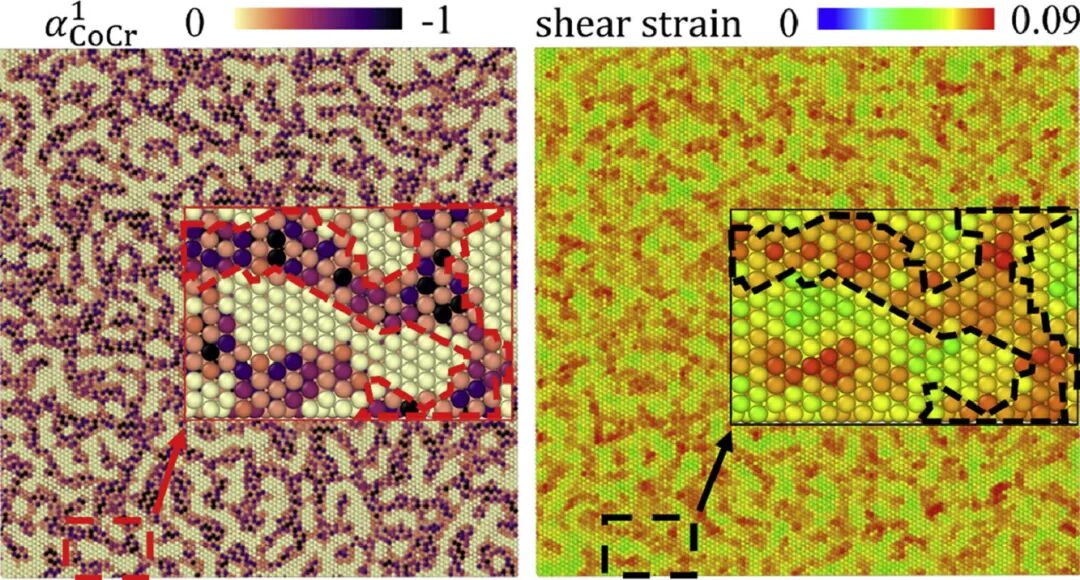 随着对中熵及高熵合金的研究不断深入,这类合金各种独特的性能被不断发掘。有关这些复杂合金中成分的涨落对性能的影响也越来越受到关注。在本研究中,我们结合了大规模分子动力学(MD),蒙特卡罗模拟和晶体缺陷分析等多种方法,研究了晶格畸变(LD)和化学短程有序(CSRO)对单晶和纳米晶CoCrNi中熵合金(MEA)在应变状态下,位错和孪晶形核和演化的影响。我们假设了一种与CoCrNi合金具有相同体积特征但没有LD和CSRO的纯A原子合金,通过比较两者在应变下的响应,阐明了LD和CSRO的影响。分析结果表明,材料的屈服强度是由肖克利分位错形核所需应变决定的,LD会降低该应变,而CSRO则会增加该应变。我们发现,尽管分位错倾向于在CoCr团簇附近形核,但无论其尺寸如何,随着CSRO的增加,它们都越来越难以扩展和增殖。发生屈服后,由于LD和CSRO对滑移的阻碍作用,促进了纳米孪晶通过可动肖克利分位错的形核。