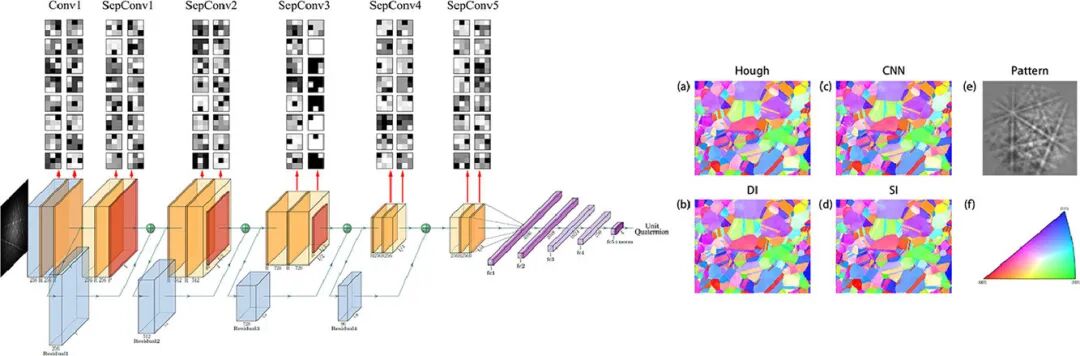 EBSD图样的准确标定一直是一个材料表征过程中具有挑战性的问题。在本研究中,我们提出了一种新的卷积神经网络(EBSD- CNN)方法,对EBSD图样进行实时标定。我们通过向标准卷积神经网络中引入了一个错配损失函数实现了这一目标。我们通过模拟和实验数据对该方法的标定准确率、速度和抗噪能力进行了评估,并与其他标定方法进行了比较。结果表明,CNN与目前已经商业化的基于Hough转换的标定方法相比,准确率和速度相当,并有望实现替代。我们通过可视化所选择的过滤器来了解网络功能。此外,我们也通过对特征选择的可视化对神经网络的功能特征进行了进一步探究。