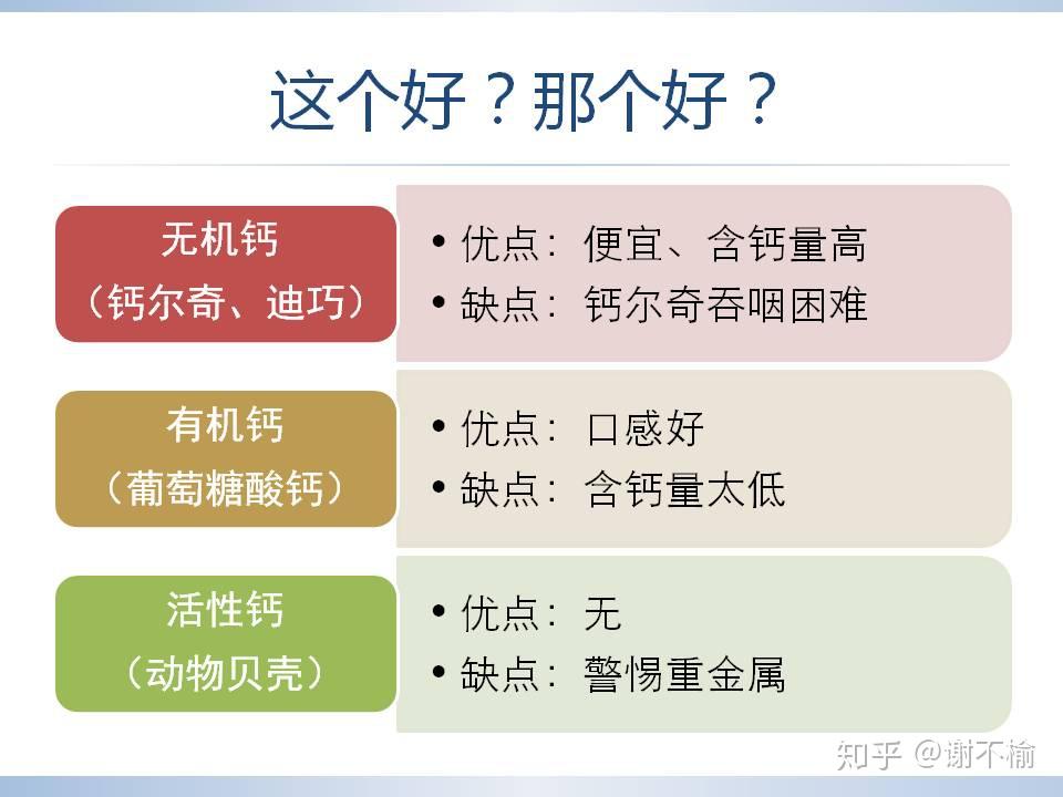 有些保健品,打着“有机钙”“绿色钙”之类的噱头旗号,把普通的钙片卖成高价。个人认为完全没有必要。
