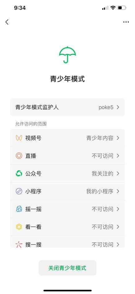 目前,微信“青少年模式”已具备独立密码、时长限制、弹窗提醒、青少年专属内容池等功能,同时对微信生态内的公众号、小程序、视频号、小游戏、链接、摇一摇、看一看、搜一搜、游戏、直播、附近、购物、微信豆等功能进行了一系列限制。借助新上线的“监护人授权”功能,监护人可以更为灵活地通过“青少年模式”为孩子提供健康的成长环境,助力孩子身心的健康发育。
