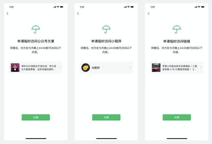 开启“监护人授权”功能后,当孩子想查看老师同学分享的未关注公众号图文、观看时长超过40分钟的视频号内容、访问未曾添加但颇具创意的小程序的时候,都可以通过“监护人授权”向家长发出临时访问申请。