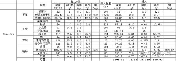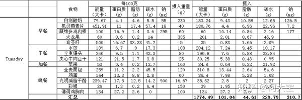 所以这边一个超有用的建议——完整记录下自己一周的常规饮食,清楚每日摄入热量、蛋白质、脂肪、碳水,再与建议摄入量进行对比。