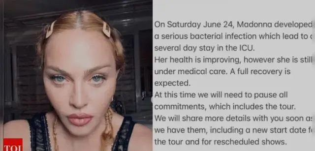 64岁的麦当娜,最近被报道住进了ICU,需要插管维持呼吸。从上个月开始她就断断续续发烧,但每天坚持排练,不肯休息。直到6月底,她在家中被发现昏迷不醒,紧急送到医院抢救,这才脱险。