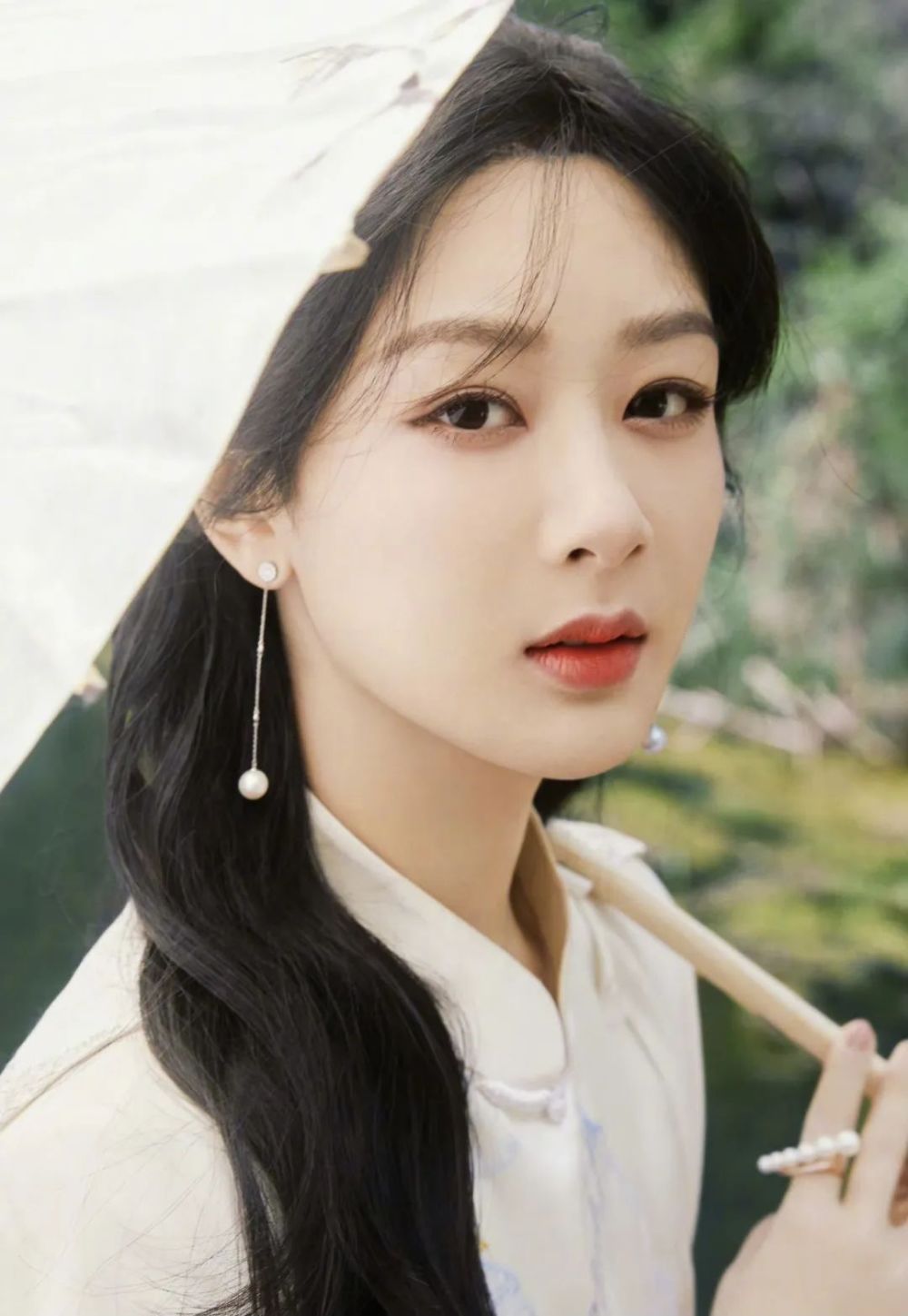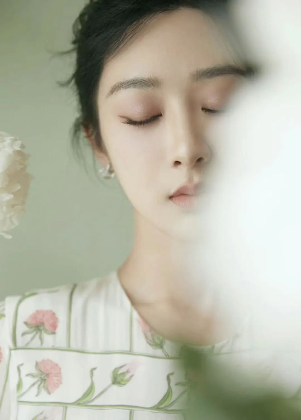 八字刘海搭配毽子头半扎发让杨紫看起来优雅十足,给人一种自然舒适的温柔感。?????????