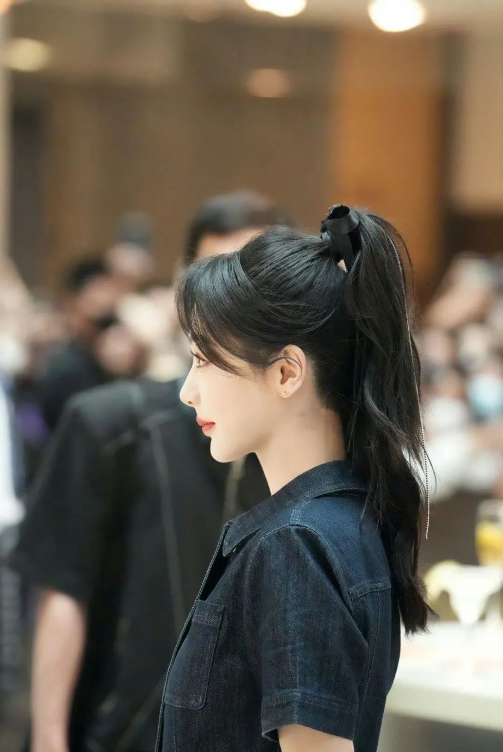 高挺的鼻子与完美的下颚弧线打造出绝佳侧颜,高束的马尾很显气质,即便是生图,杨紫状态也超能打!???????????????