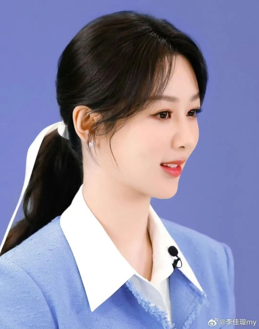 可以看出杨紫的妆发较之前的造型有了明显的升级,全新的八字刘海高马尾造型以黑色丝带蝴蝶结优雅束起,妆容精致干练,一颦一笑间温柔尽显。