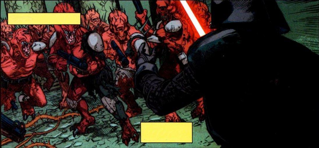 我们为不常见的新词尽量带来精准的翻译的同时,也对已存在中文翻译的旧词进行删改保留。Coruscant、Twi'lek这些人名和种族名,我们就采取了台湾朱宅恒翻译Thrwan Trilogy时采用的科洛桑、提列克的译名。又例如Jedi,音译应该是“杰戴”,但“绝地”这个译名音近而形佳,也被我们保留了。还有一种情况,中文官方提出译名建议,我们商讨后采用官方方案。例如Darth Vader,之前星战中文网一直致力于采用新华社译名原则,译为达斯·维德,但与官方商讨译名时,官方提出一些理由,最后维持相对常见的“达斯·维达”翻译。