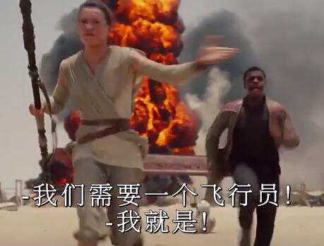 在《原力觉醒》中国版预告片中,有一段主角Rey和Finn逃避轰炸的片段。这里出现的翻译问题很多同志都提到过。