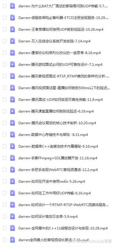 【文章福利】:音视频面试题、学习资料、教学视频和学习路线图资料(资料包括C/C++,Linux,FFmpeg webRTC rtmp hls rtsp ffplay srs 等),qun994289133免费分享,有需要的可以加群领取哦!~学习交流裙994289133加入领取资料