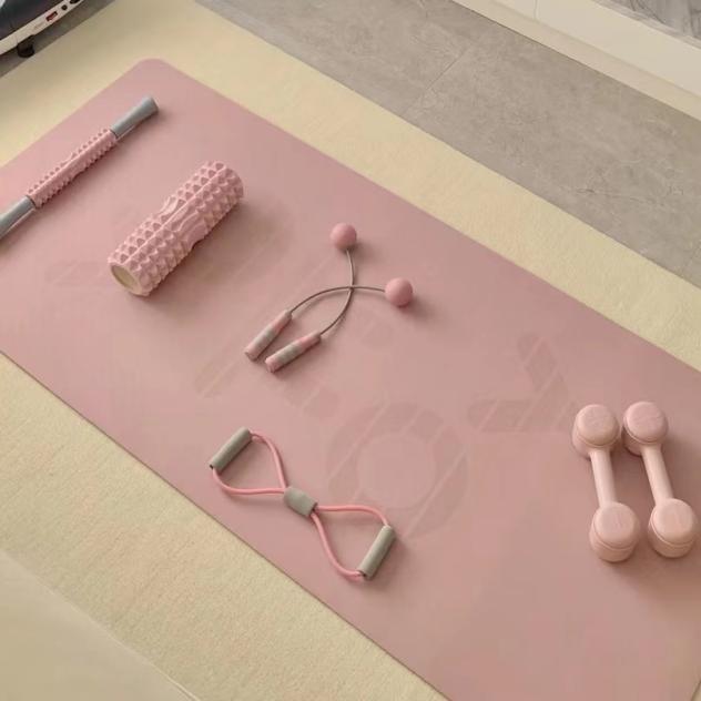 上面这些东西依次是狼牙棒、泡沫轴、无绳跳绳、拉力器、哑铃,我买的是YOTTOY。你们也可以依个人实际去网上选购,随便一搜就有很多,选择面还是很广的。涂抹淡纹油