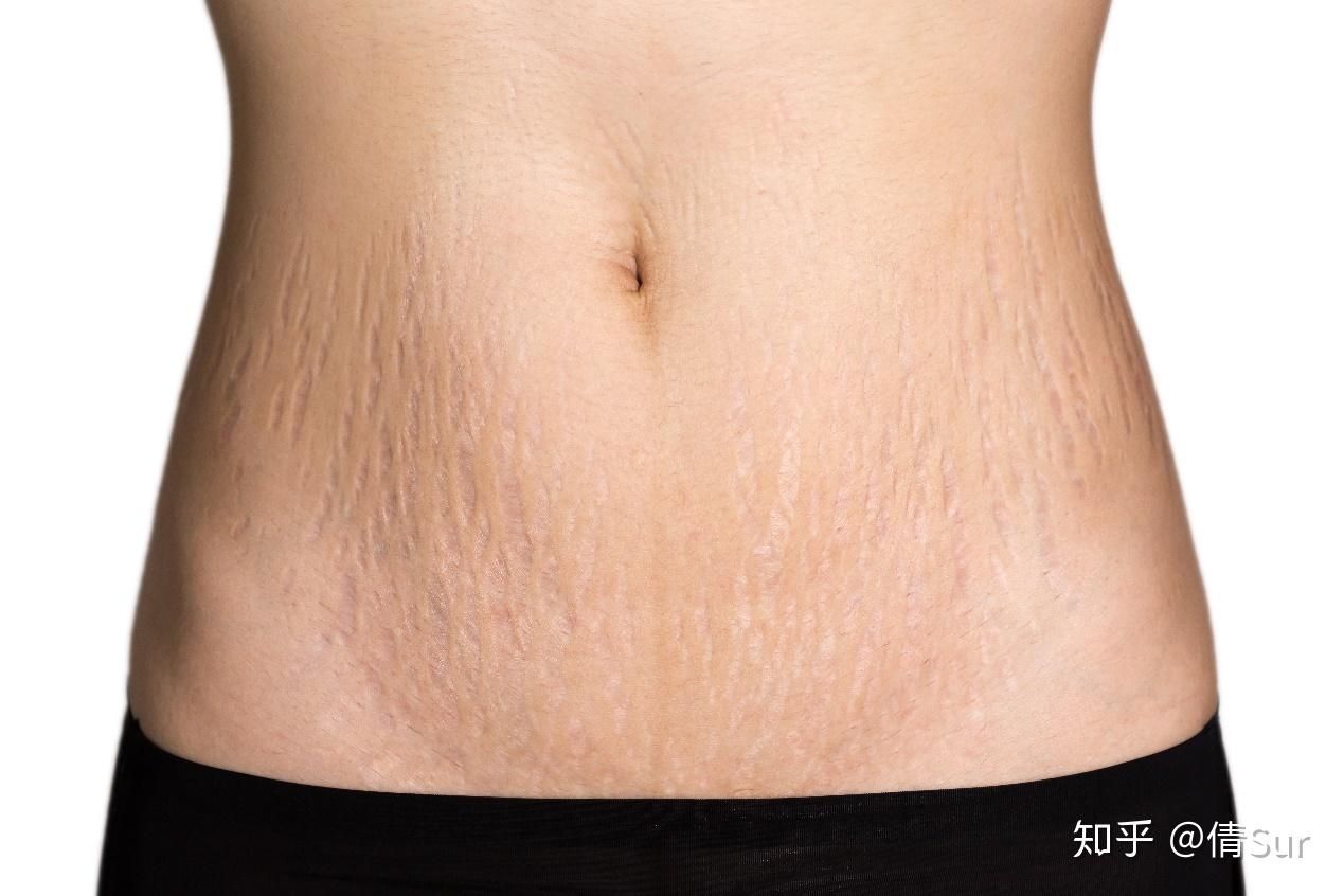 肥胖纹的形成经历两个阶段:急性期紫红色条纹和白色条纹。早期真皮层弹力纤维断裂、胶原纤维过度沉积并发生炎症反应,引起血管扩张形成了急性期的紫红色条纹;不久后断裂的真皮层则发生萎缩,肥胖纹的颜色会逐渐变浅,转为白色。网上很多去肥胖纹成功了的办法,其实大多都是在紫色条纹期,这个期间的肥胖纹通过一些手段是可以淡化的。(图片来源网络,侵删!)