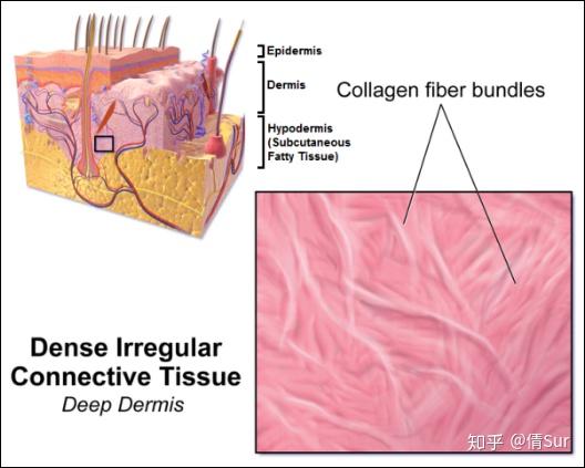 大家对于肥胖纹更加关注的应该是真皮层和皮下组织:而真皮层位于三者之中央,其主要由结缔组织构成,既含有丰富的毛细血管、淋巴管、神经末梢等起感觉传导与促进新陈代谢作用的管道,也包括导致肥胖纹产生的胶原纤维、弹力纤维等有助于维持皮肤弹性和韧性的结构。皮下组织则包括脂肪在内的一些疏松结缔组织,其间亦包含血管、淋巴管等结构。随着体重增长,皮下脂肪亦逐渐增多,为了适应这种扩张,真皮层的弹力纤维和胶原纤维等结构亦缓慢拉伸,以适应生长。