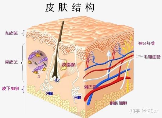 首先,我们需要了解一下皮肤的生理结构,皮肤大致分为3层---表皮层、真皮层、皮下组织。表皮层又分为角质层、透明层、颗粒层和生发层,属于最外表的部分,主要起保护、感觉、排泄等作用。