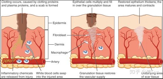由于早期真皮层弹力纤维断裂,导致胶原纤维过度沉积,继而引发炎症,从而血管扩张形成了早期的紫红色条纹第二个阶段,由于断裂的真皮层发生了萎缩,肥胖纹逐渐变浅转变成白色