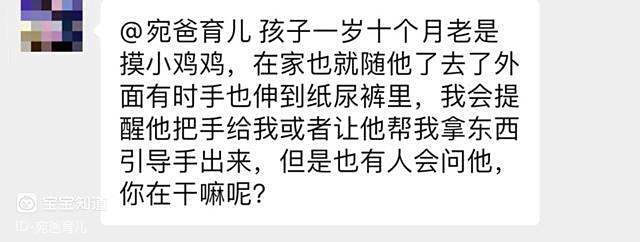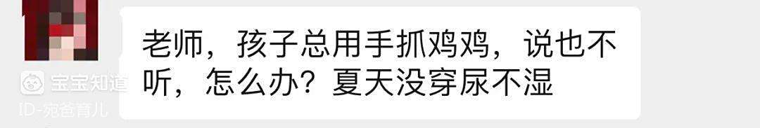 这种心态下,把屎把尿这个老生常谈的育儿问题又出现了,固定时间、固定动作把屎把尿,让宝宝关注了自己的变化,尤其是在把后宝宝排便了,家长的表情都透露着放松的愉悦,也正是把的动作宝宝刚好可以看到自己的生殖器,久而久之宝宝开始关注隐私部位。