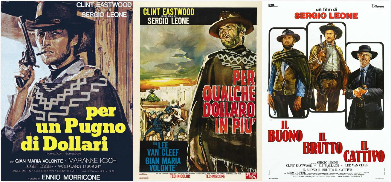 Dollars)、《黄昏双镖客(为钱卖命2)》(For a Few Dollars More)、《黄金三镖客(善恶丑)》(The good,
