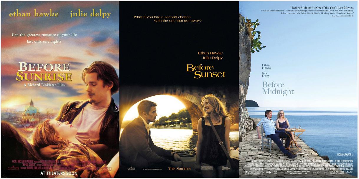 当然偶尔也可以见到一些相对不那么商业的三部曲,比如理查德·林克莱特的《爱在黎明破晓前》、《爱在日落黄昏时》、《爱在午夜降临前》,塞德里克·克拉皮斯的《西班牙公寓》、《俄罗斯玩偶》、《中国益智游戏》,等等。