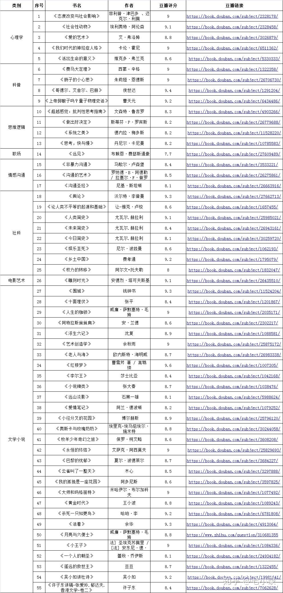 表里每一本书都有放上直接跳转的豆瓣链接,这样大家在确定这本书是否是自己想看的书的时候,直接点开链接进行查看书评就可以,不用再一本一本去搜,节约大家时间。