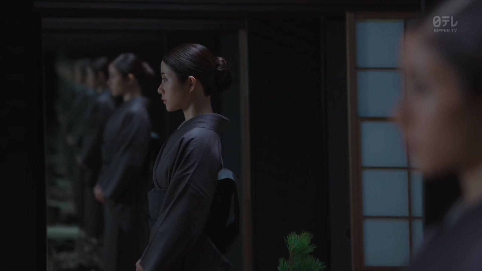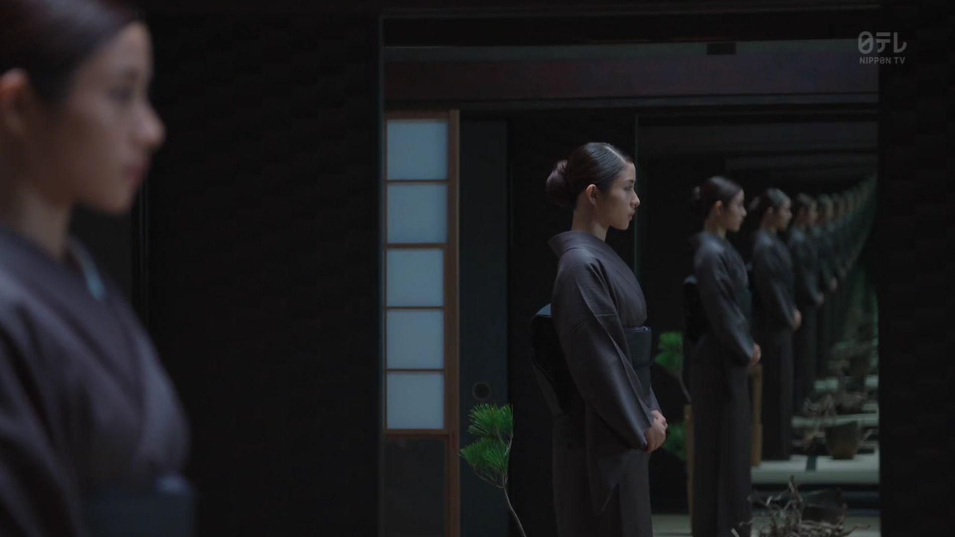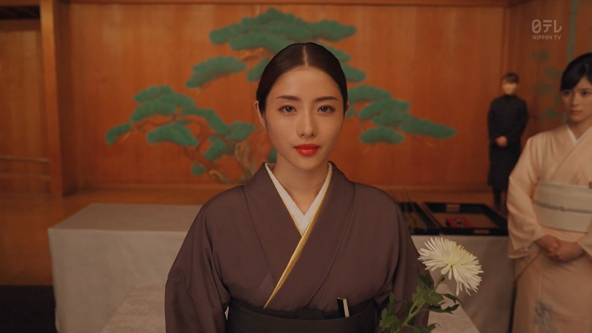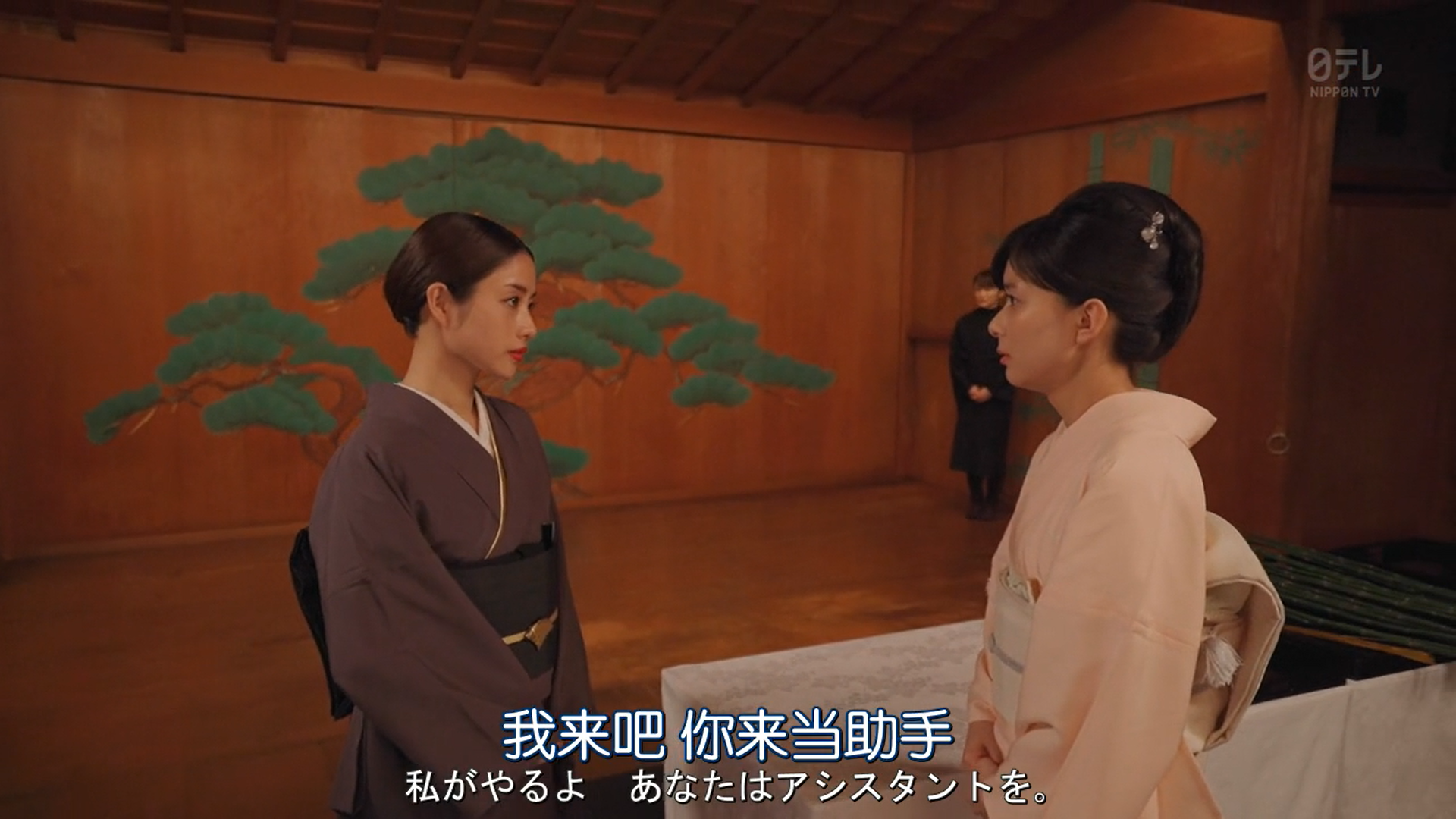 在这里实际上十元很好的演绎出了大家家元的气势,稳重的同时不失魄力,自信同时表现了威慑力。无论他人怎么样都不为所动,专心于自己,站在那里便是视角的焦点。十元的表现非常好,说桃是现任家元恐怕也不会有人怀疑吧。然而对于才二十多岁的桃来说这份气场太过压抑了。