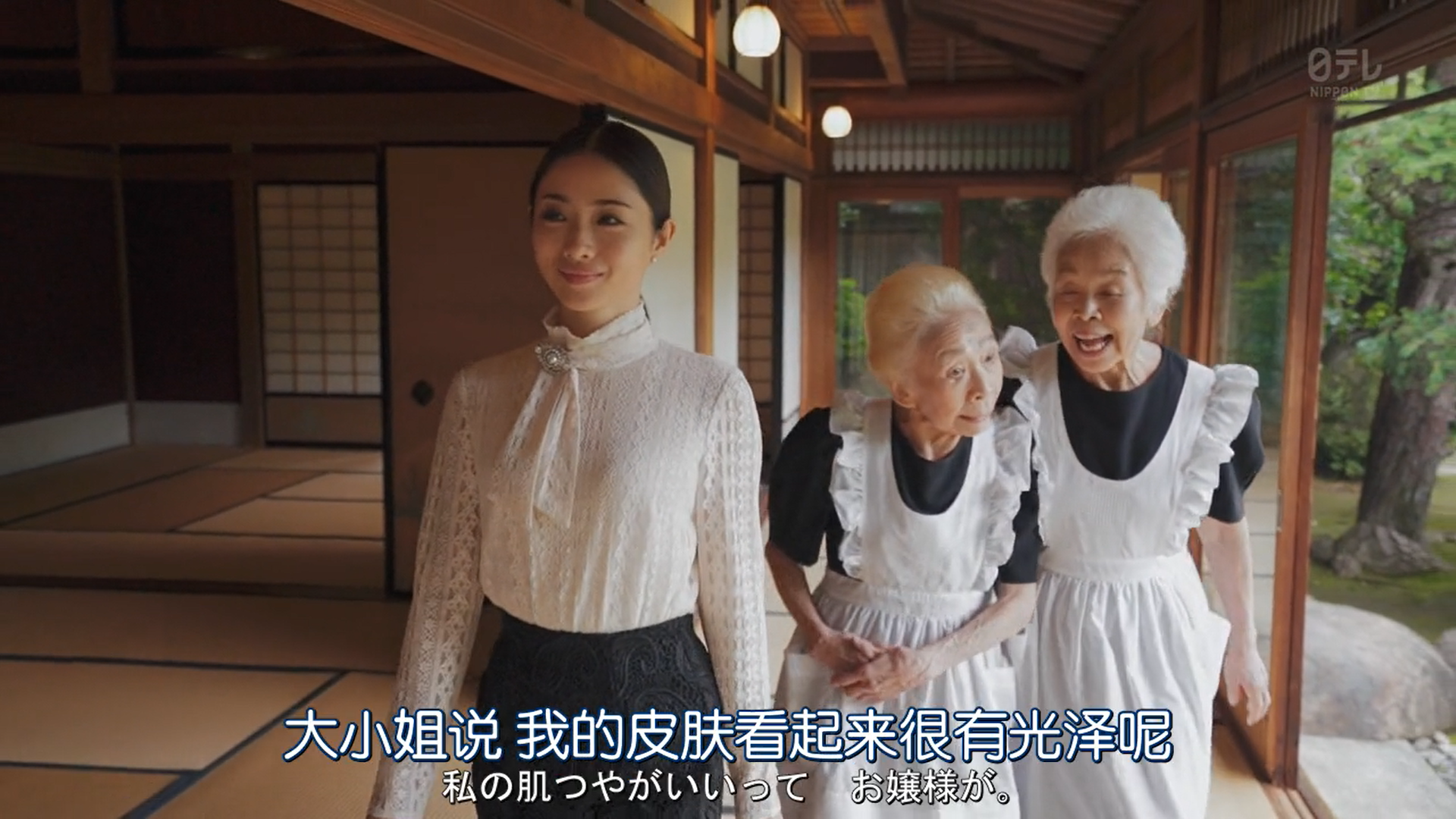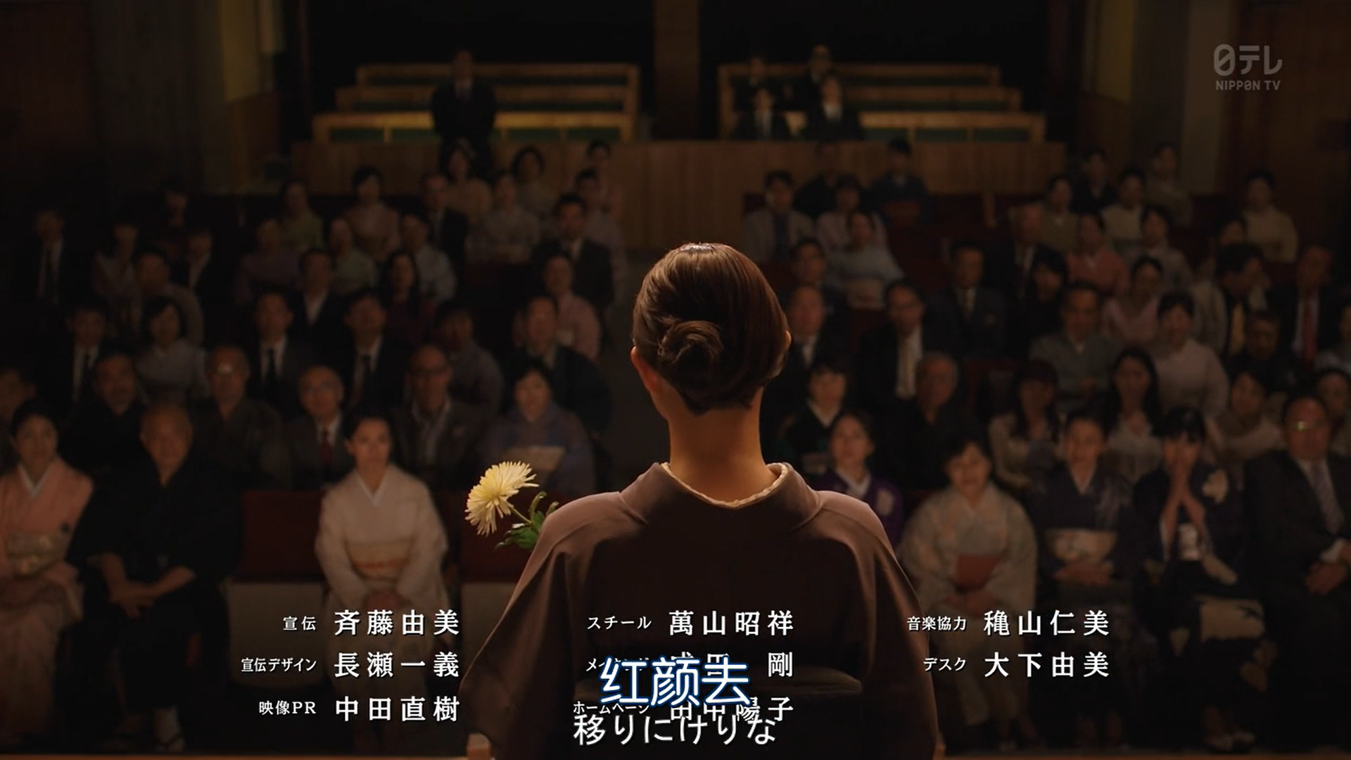 但是十元真的无法演出大小姐的感觉吗?在自行车店中十元将脚抬起后等待了数秒才意识到“自己来,当然的”,实际上这里就是一个伏笔,作为大小姐在受伤以后清洗伤口自然是有仆人服侍,而桃也下意识的先等待仆人来工作。接着在前往流派时,十元的衣着庄重,闲庭漫步,面对女佣时略带贵气的风格,以及在父亲面前正座所表现的礼仪。其后,在发表会上,桃轻画好妆,在三面镜前整理衣容,以严肃的面容走入会场,然后在细嗅花儿后漏出了典雅的微笑,轻唱和歌,一举一动高雅的同时又不失庄严。说十元演不了高雅的角色可以看看她当初在义经中的静御前。可谓大气优雅。