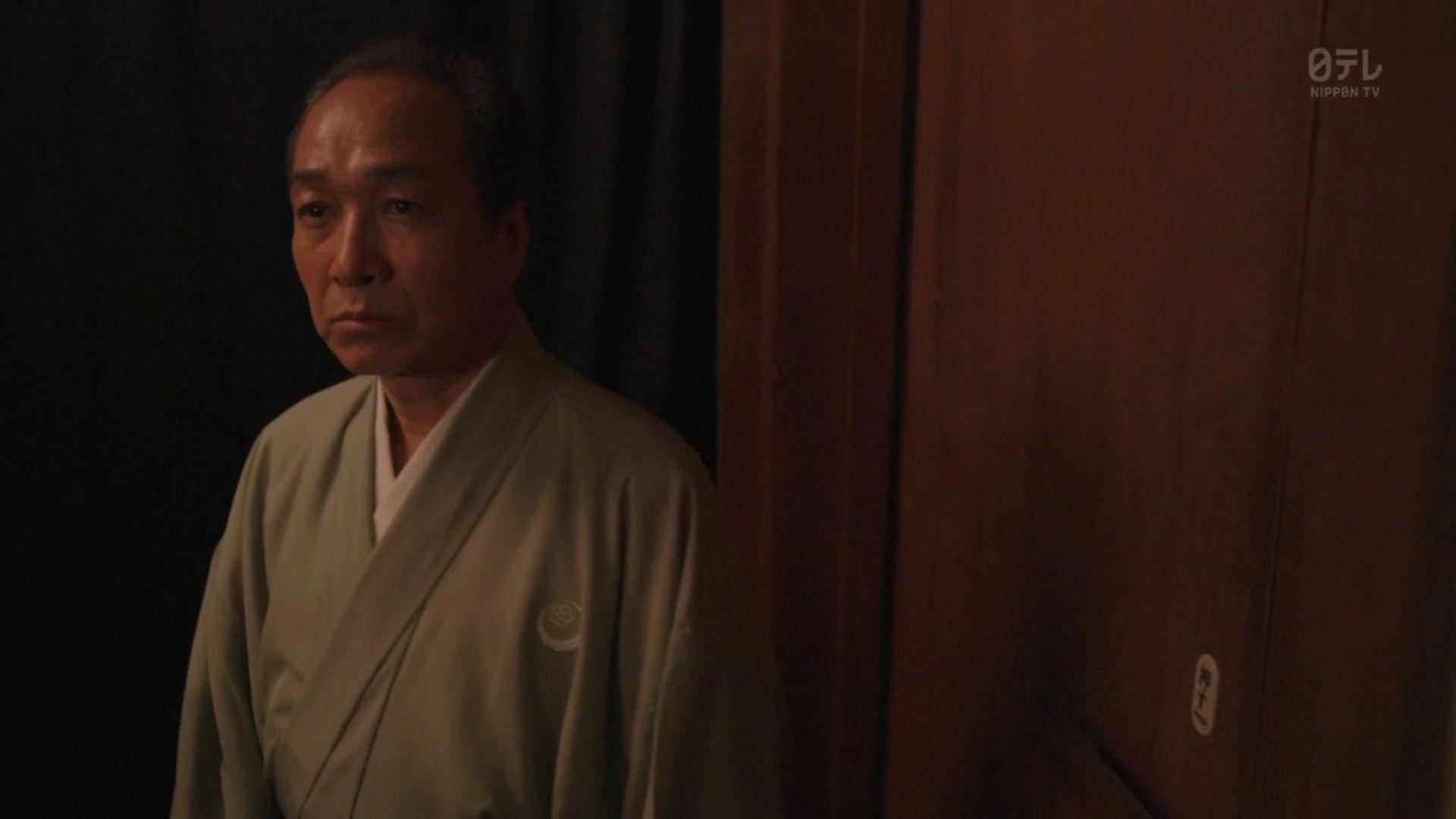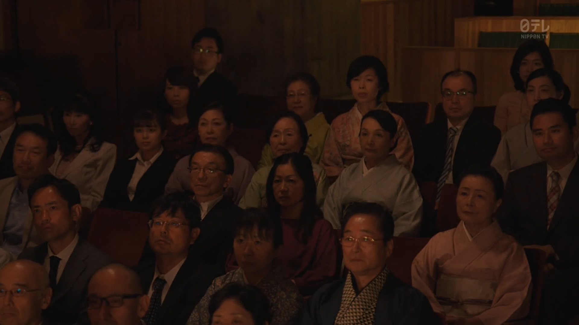 我们看到的桃和妹妹的关系非常好。但是我们再看看这一段里桃对妹妹时,桃的眼神可以说冷酷苛刻加上严肃的表情,嘴角毫无波动,,面对失败紧张的妹妹却如此严厉毫无安慰鼓励的意思。这里可以看出桃是作为家元的位置来面对奈奈,那我们再看看父亲在台上的样子吧。