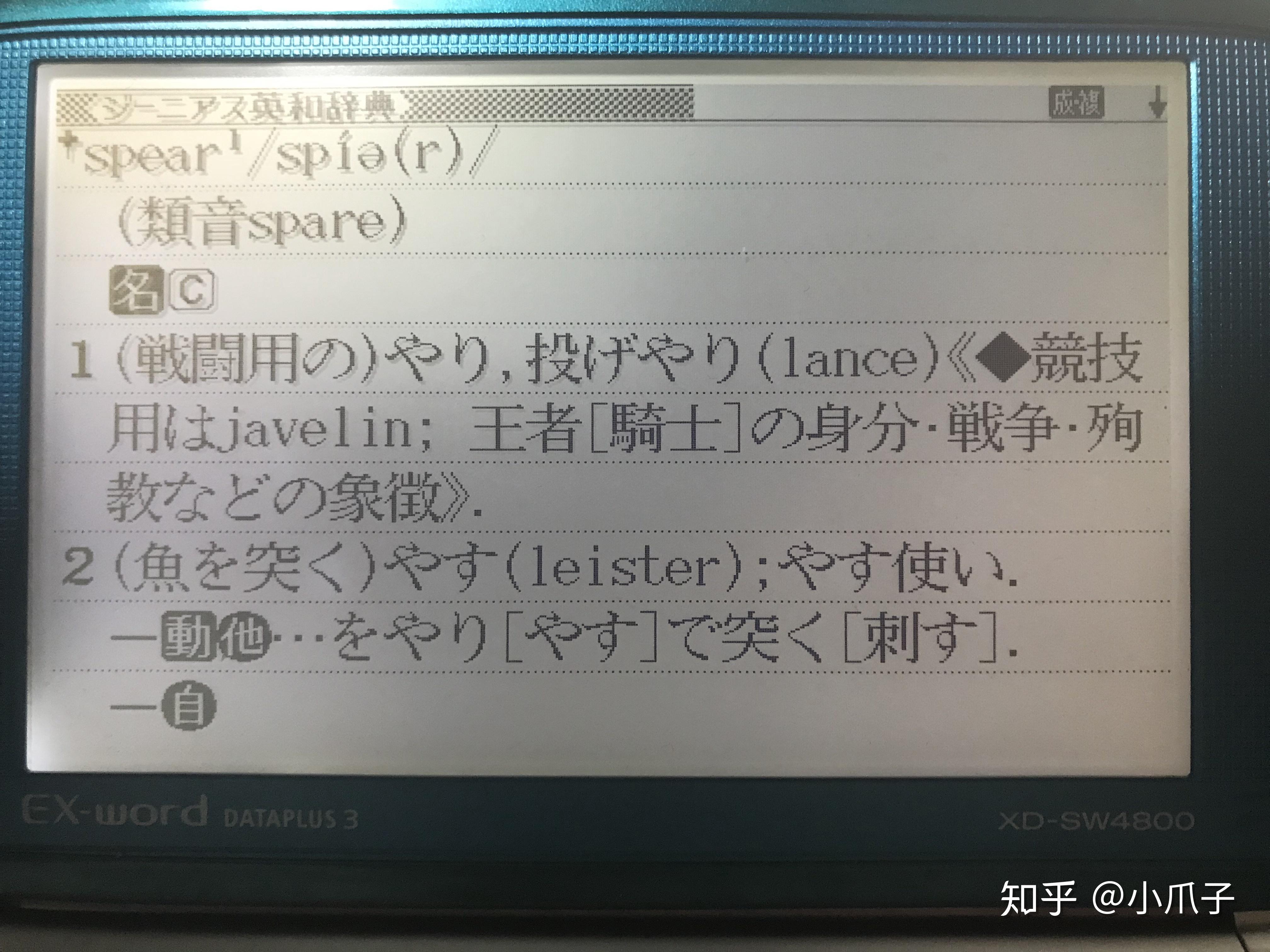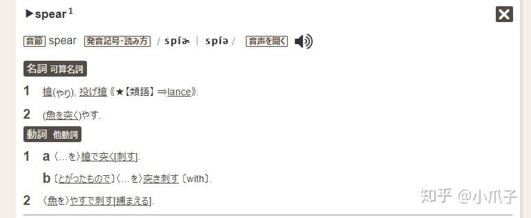 更有意思的是,英和词典中对spear的解释通通使用了本土语言的「槍やり」来作为对词意的解释,スピア什么的根本提都没提,说明即使对于日本人来说,理解片假名外来词依然依赖于传统的平假名和汉字,所以一开始就用平假名和汉字不就好了吗?