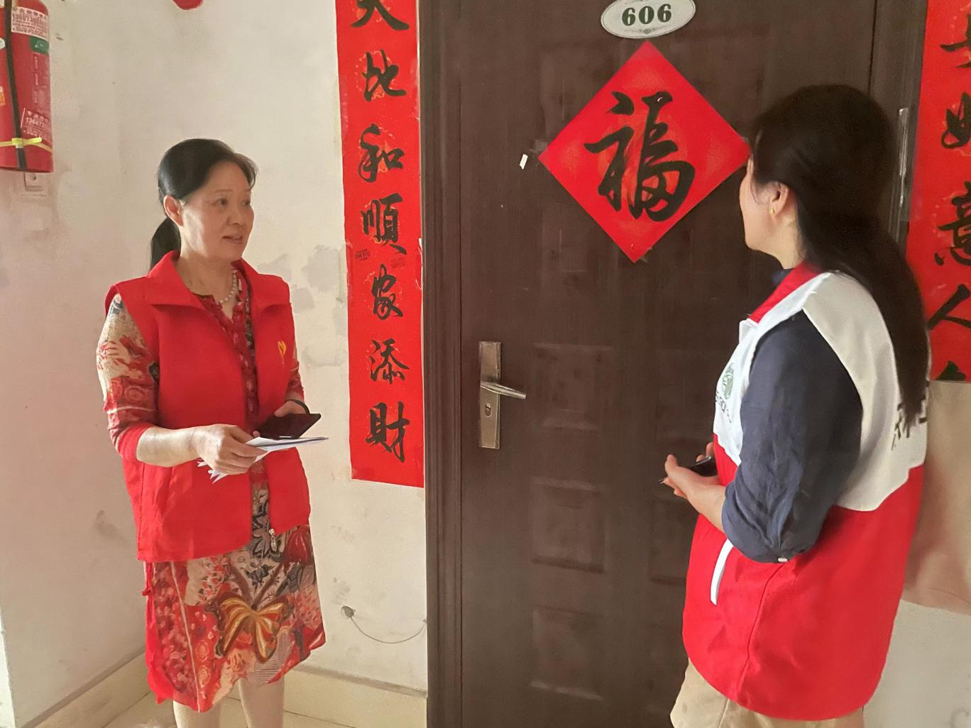 彭涤慧(左一)动员小区内的党员、热心居民一起逐户上门收集意见(长沙县湘绣社区 供图)