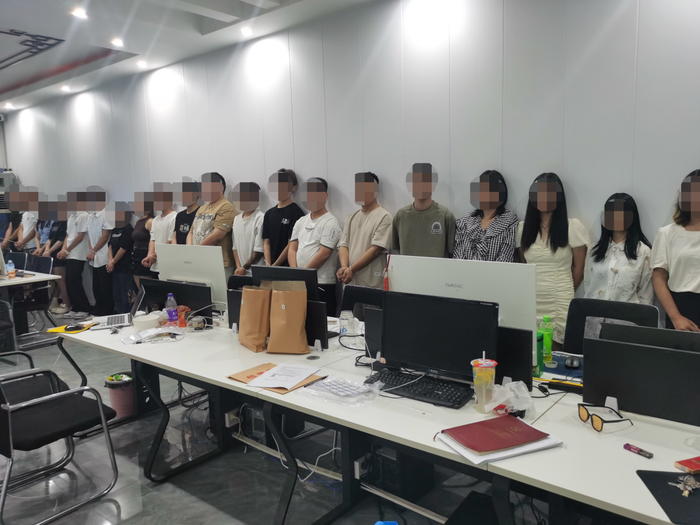 为确保收网行动顺利进行,专案组民警赶赴河南三市六地对涉案的6个犯罪窝点开展摸排布控,并制定了详细周密的现场抓捕、勘查取证和看押带离方案。7月7日凌晨,在滁州市公安局的指导下,定远县公安局组织刑侦、网安、大数据中心、派出所、战训基地等部门80余名警力合成作战,连夜赶赴河南三市六地开展集中抓捕行动。行动中,一举捣毁6个电信诈骗窝点,抓获团伙成员41人,现场扣押作案电脑、手机200余台,初步查明诈骗资金100余万元。