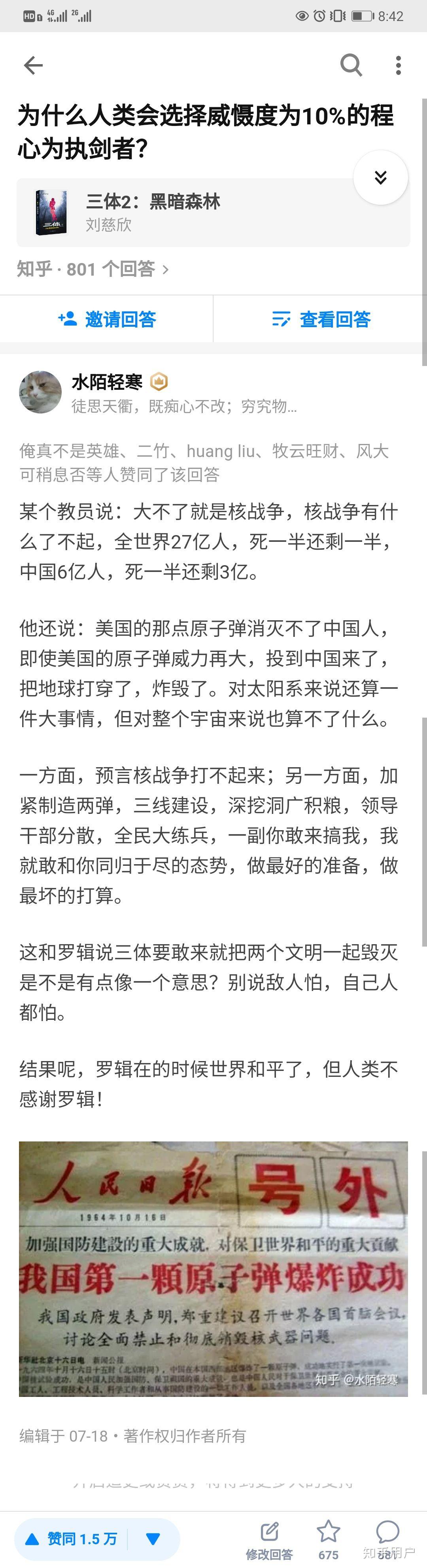 知乎用户:为什么人类会选择威慑度为10%的程心为执剑者?